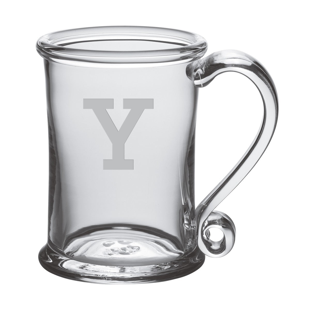 The Yale Glass Tankard is an ideal choice if you're looking for a versatile glass. The enchantingly curved glass handle will help ensure that you don't spill a drop. The Glass Tankard has the Yale Logo handsomely etched on the hand-blown glass.
