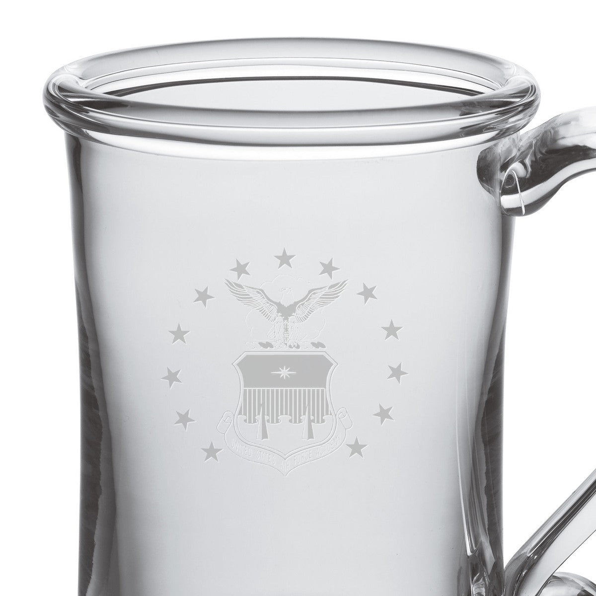 The USAFA Glass Tankard is an ideal choice if you're looking for a versatile glass. The enchantingly curved glass handle will help ensure that you don't spill a drop. The Glass Tankard has the Air Force Academy Logo handsomely etched on the hand-blown glass.