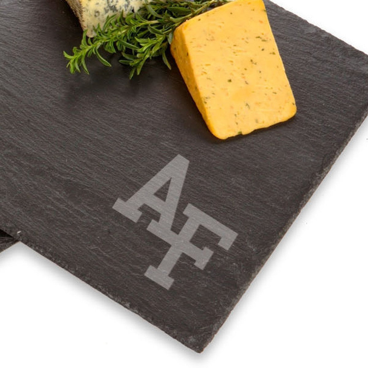 This US Air Force Academy Slate Server is a versatile choice for any occasion. Natural, textured slate with the Air Force Academy Logo etched in the lower right corner.