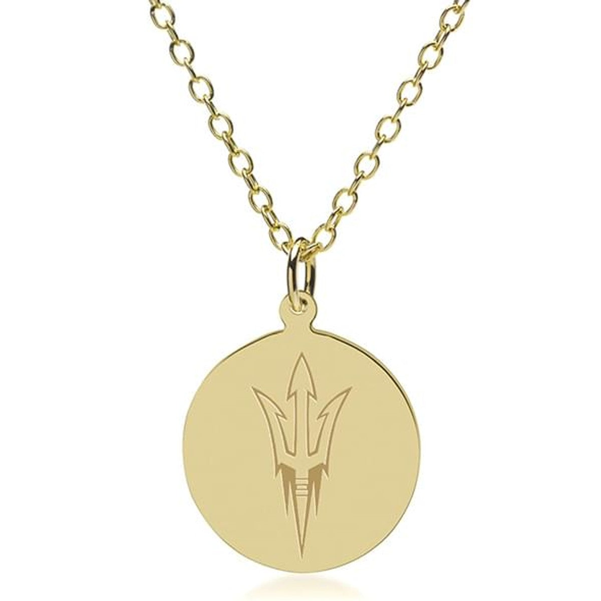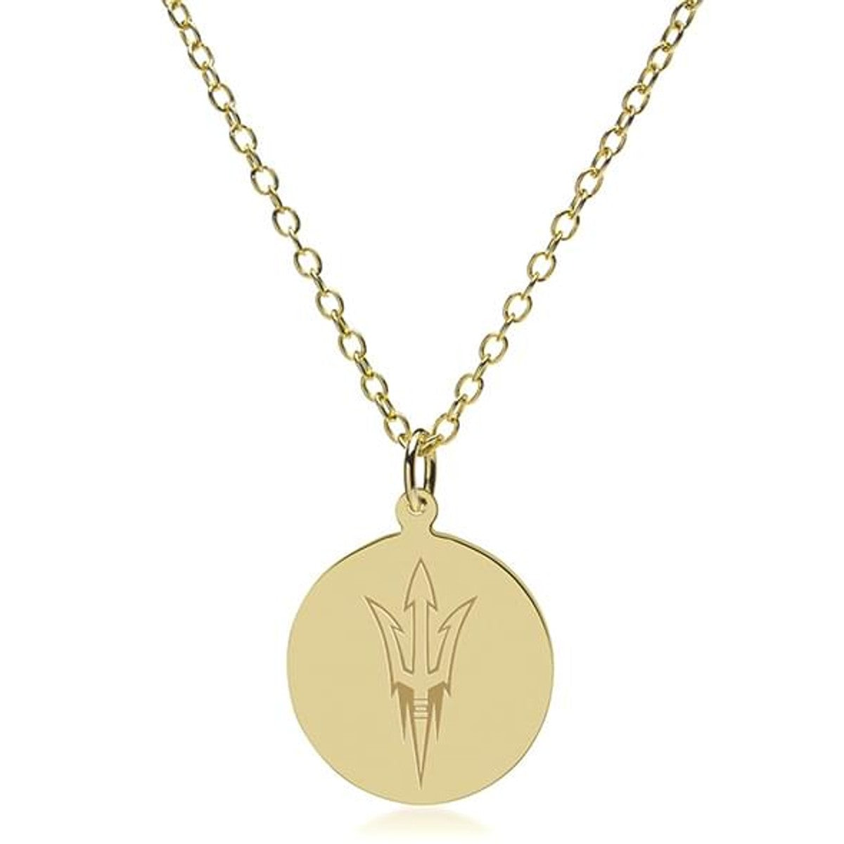 This solid 14-karat gold pendant and chain is an instant heirloom, featuring the ASU Logo beautifully engraved on the front with room for personalization on the back.