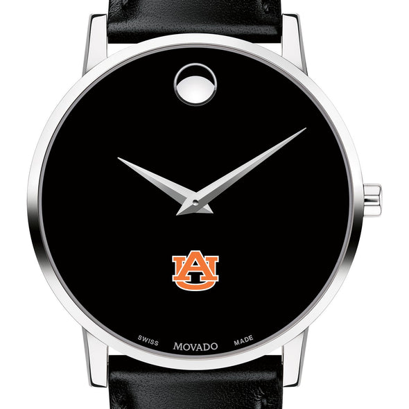 Auburn University Men's Movado Museum watch features the Auburn Logo in full color at 6 o'clock on black dial. Created in 1947, the iconic concave dot symbolizes the sun at high-noon. Complimentary personal engraving.