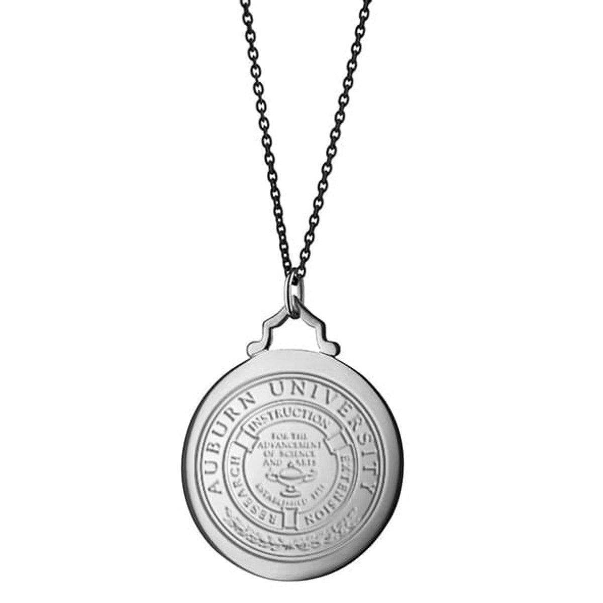 Celebrate her spirit with this sterling silver pendant set with a brilliant white sapphire. Black steel necklace adds a modern touch. Auburn seal engraved on back.