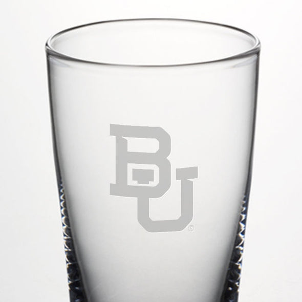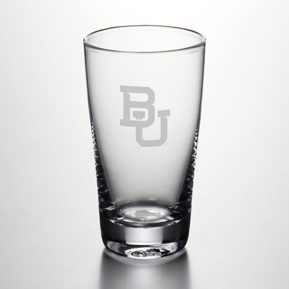 Baylor Pint Glass features the Baylor Logo handsomely engraved on the hand-blown glass. From its narrowly flared lip to its sleek, cylindrical body and sturdy, solid base, this pint glass is a classic.