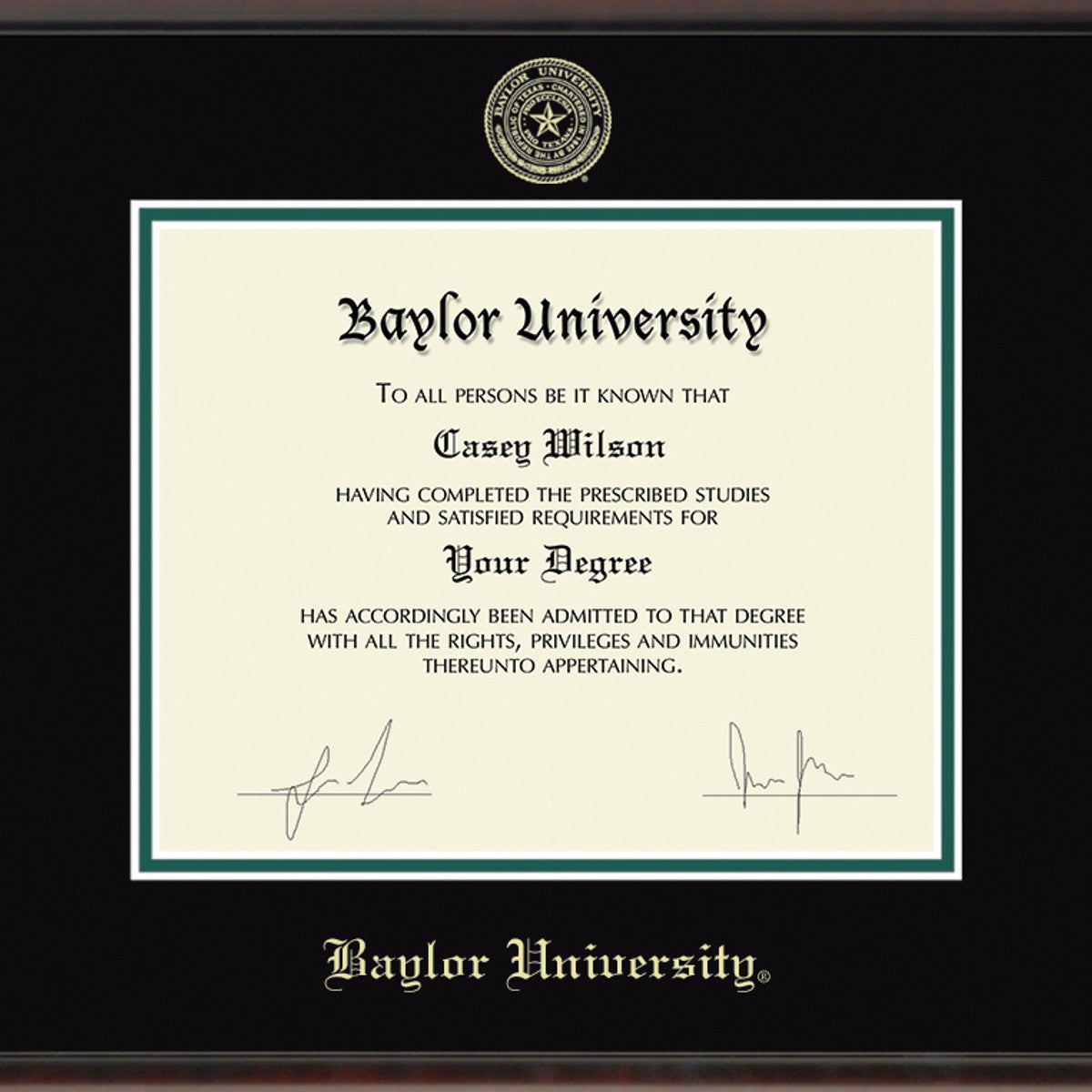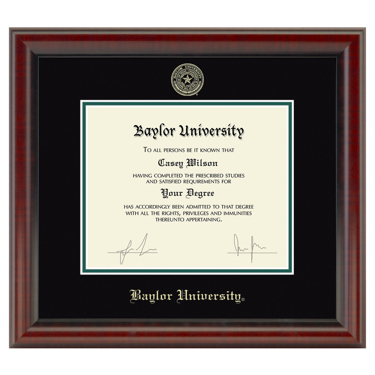 This Baylor University diploma frame is crafted from solid wood in the USA. Proudly display your Baylor diploma with museum quality conservation mounting materials to showcase and protect your Baylor University diploma.