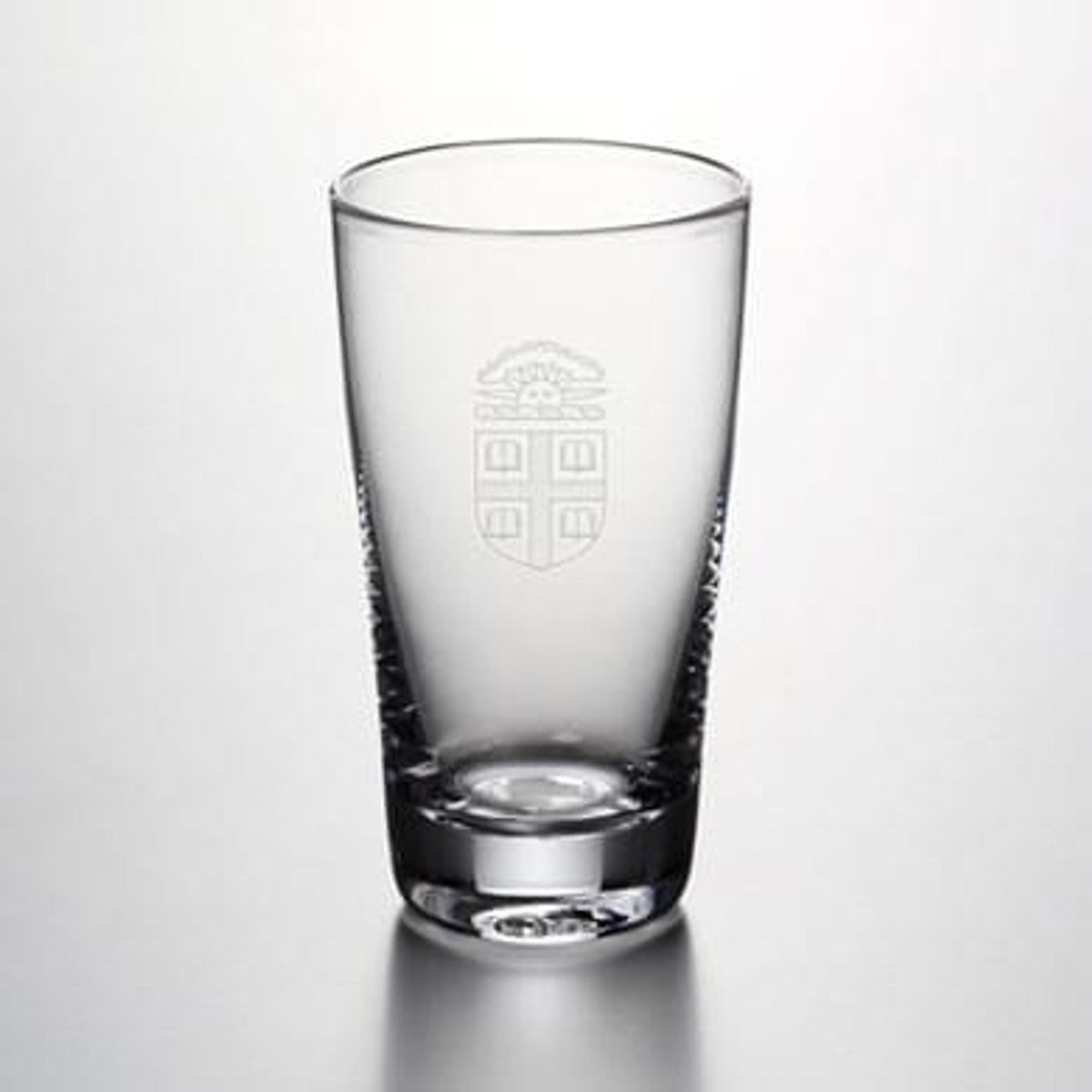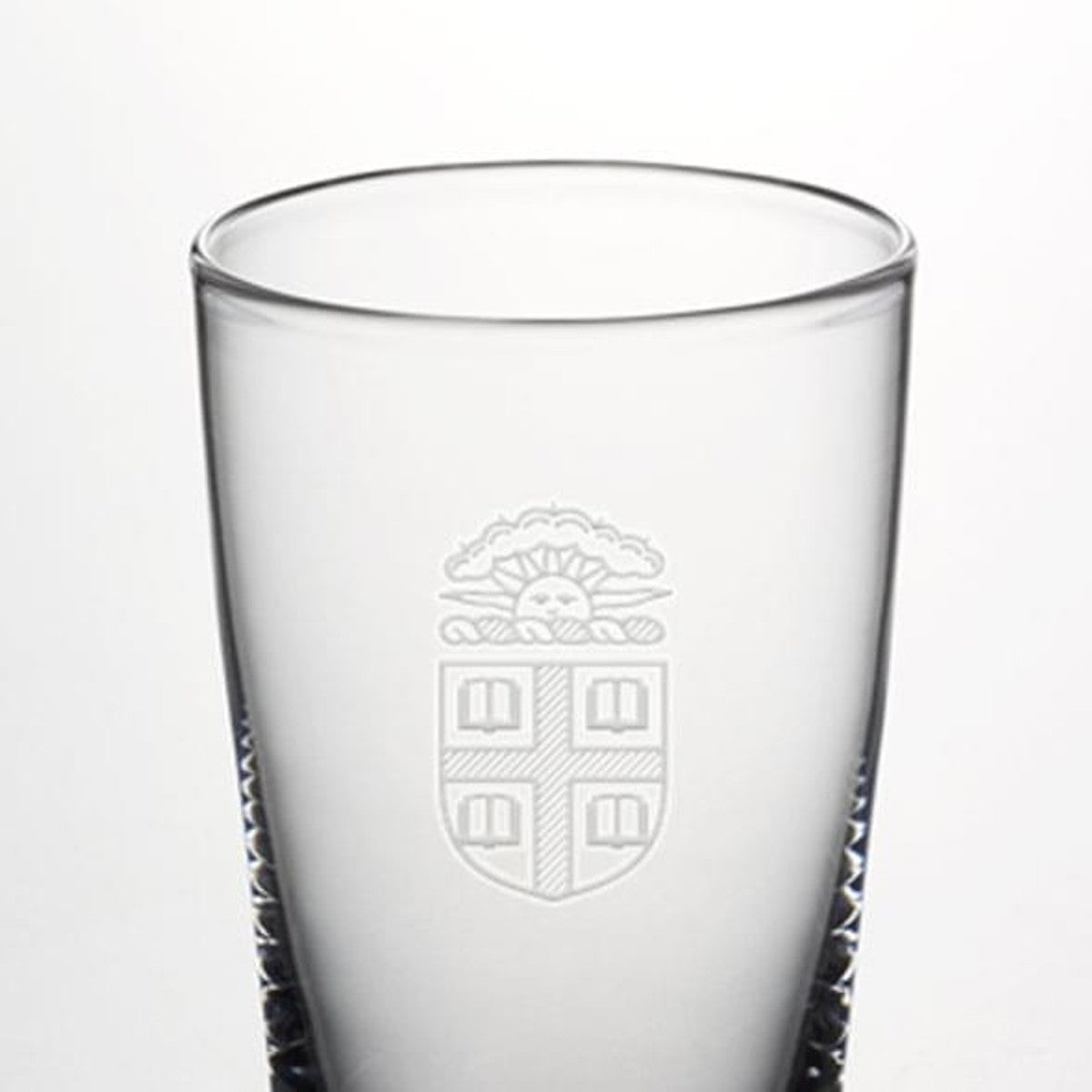 Brown Pint Glass features the Brown Logo handsomely engraved on the hand-blown glass. From its narrowly flared lip to its sleek, cylindrical body and sturdy, solid base, this pint glass is a classic.