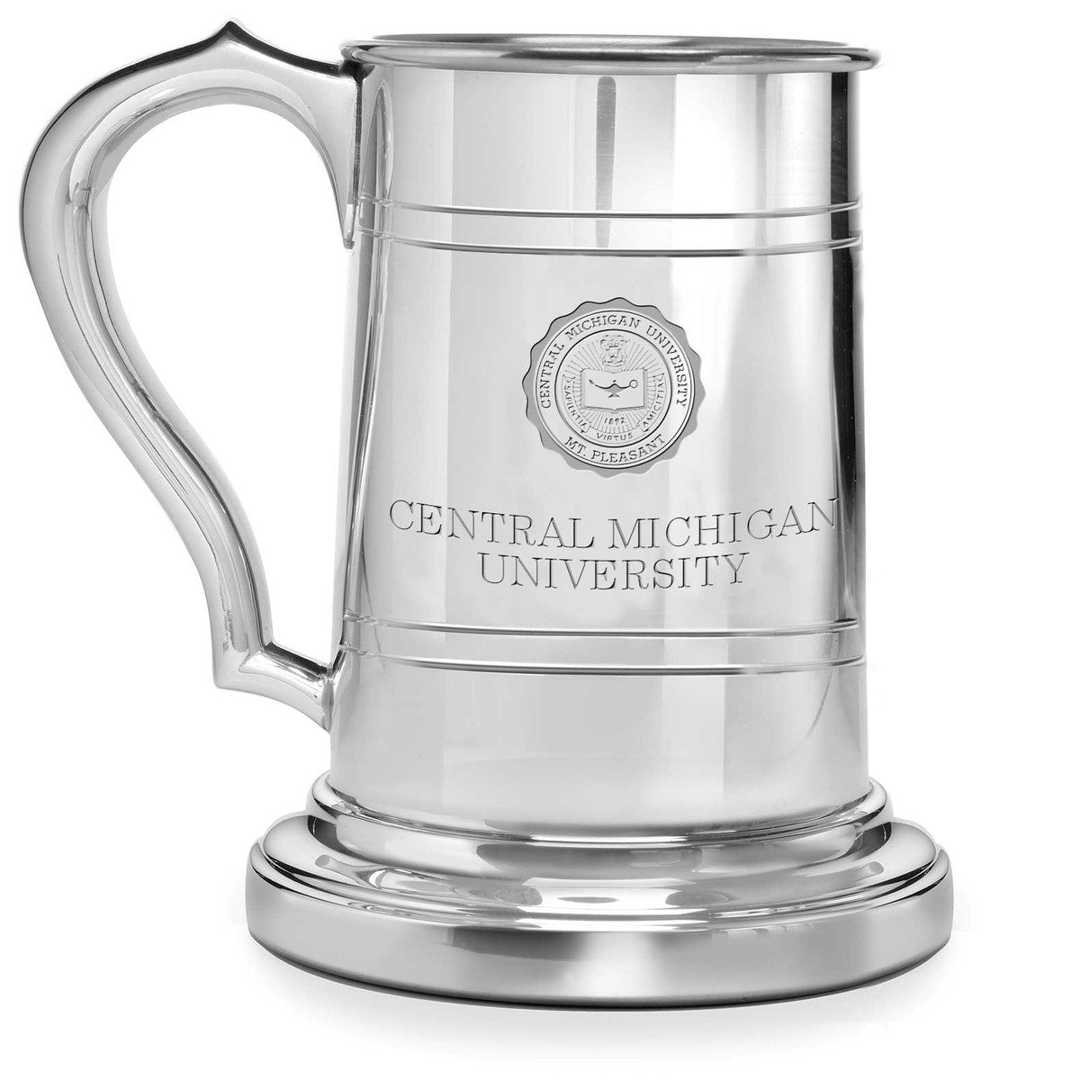 Handsomely engraved Central Michigan University pewter stein, generously accommodates your custom-engraved personal message.
