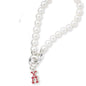 Chi Omega pearl bracelet and sterling silver and red enamel charm features Chi Omega Greek letters and interlocking "C" clasp.