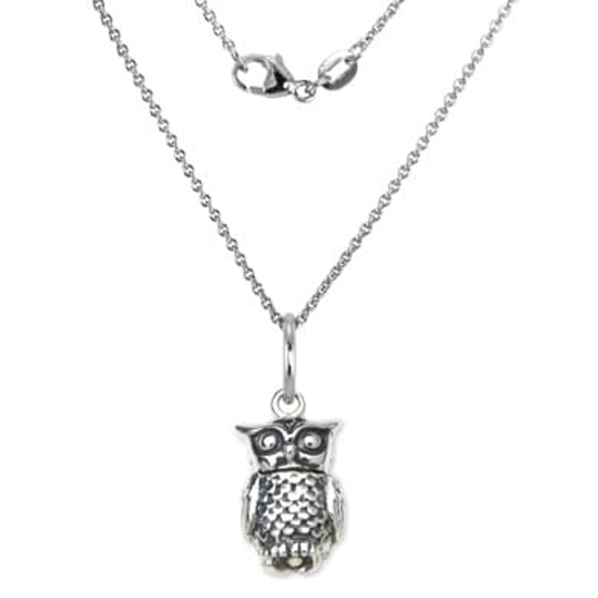 Chi Omega sterling silver necklace and sterling silver three-dimensional owl charm, perfect for any proud Chi Omega sister.