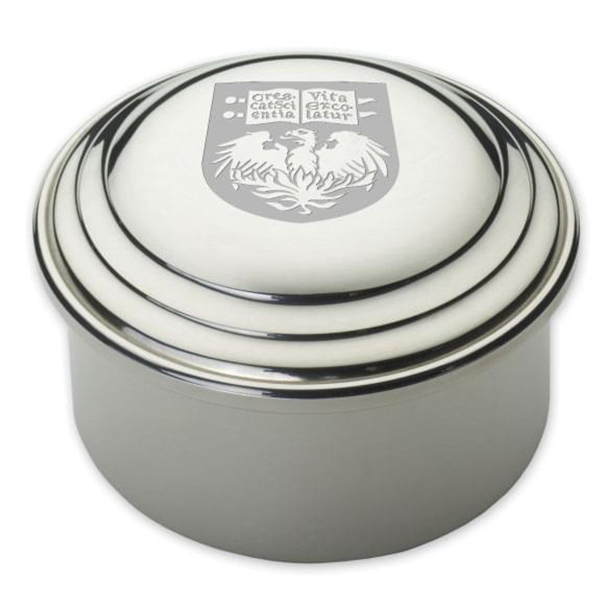 University of Chicago pewter keepsake box is a beautiful space to store your treasures and features the Chicago shield on its lid.