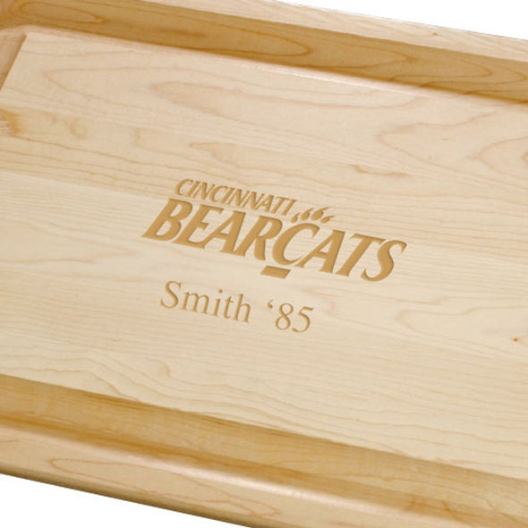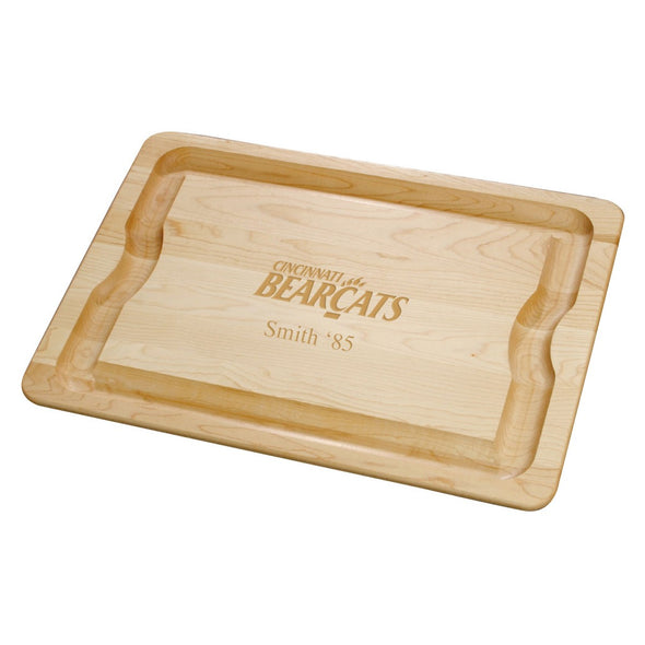 The University of Cincinnati Maple Cutting Board is crafted from sturdy Maple with undercut handles and a wide groove to collect juices while you carve. Ample surface featuring the Cincinnati logo is suitable for both cutting and serving.