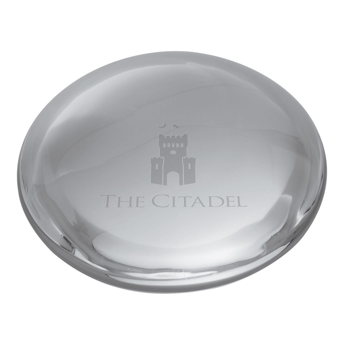 A proud display of Citadel pride for any office, the Citadel Logo is prominently etched on this hand-crafted glass paperweight.