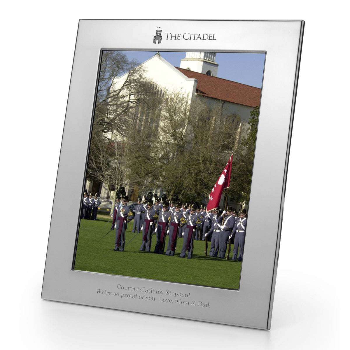 Handsomely engraved Citadel pewter frame, generously accommodates your custom-engraved personal message.
