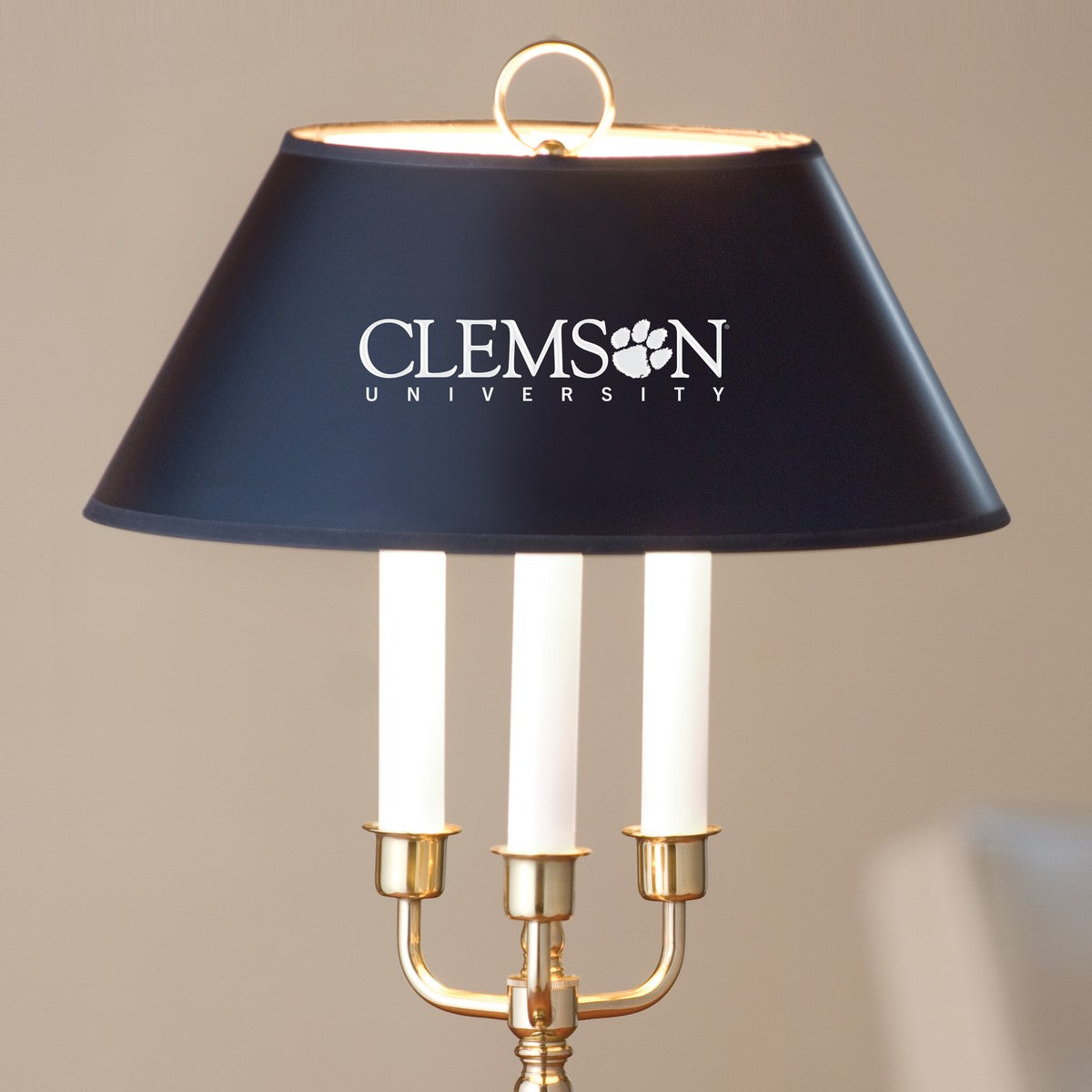 Exemplary craftsmanship defines our traditional Clemson lamp, highlighted with the Clemson Logo on the black parchment shade. A timeless reminder of your Clemson days. Free personalization with an engraved brass plate included for easy at-home attachment.