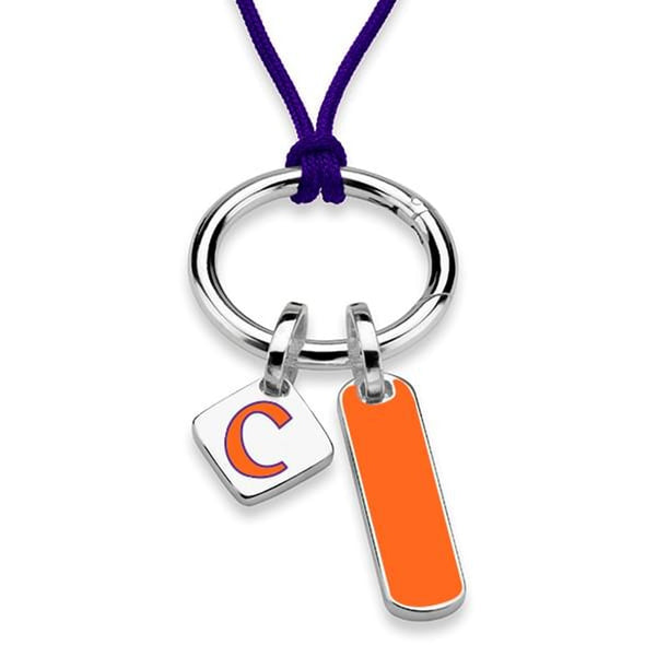 Clemson Silk Necklace with Enamel Charm & Sterling Silver Tag