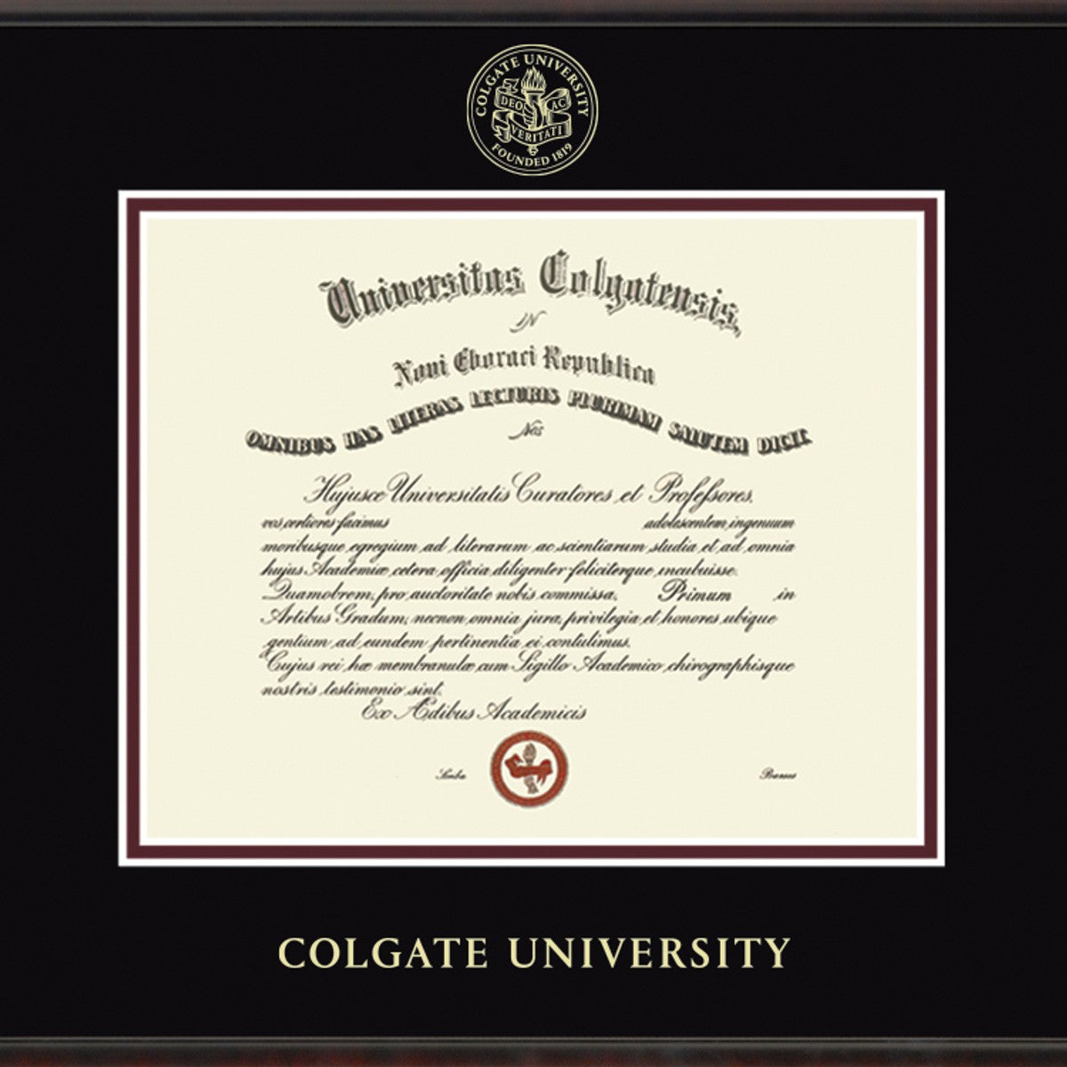 This Colgate University diploma frame is crafted from solid wood in the USA. Proudly display your Colgate diploma with museum quality conservation mounting materials to showcase and protect your Colgate University diploma.