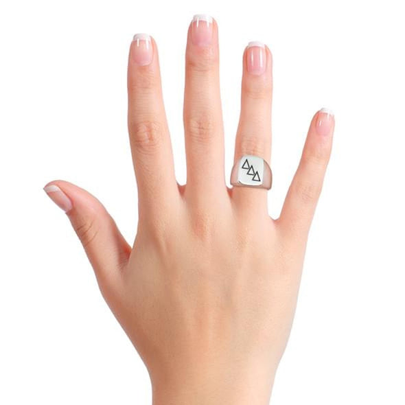 The Delta Delta Delta Signet Ring features a bold rectangular shape; a fine piece of sterling silver jewelry to be treasured for generations.