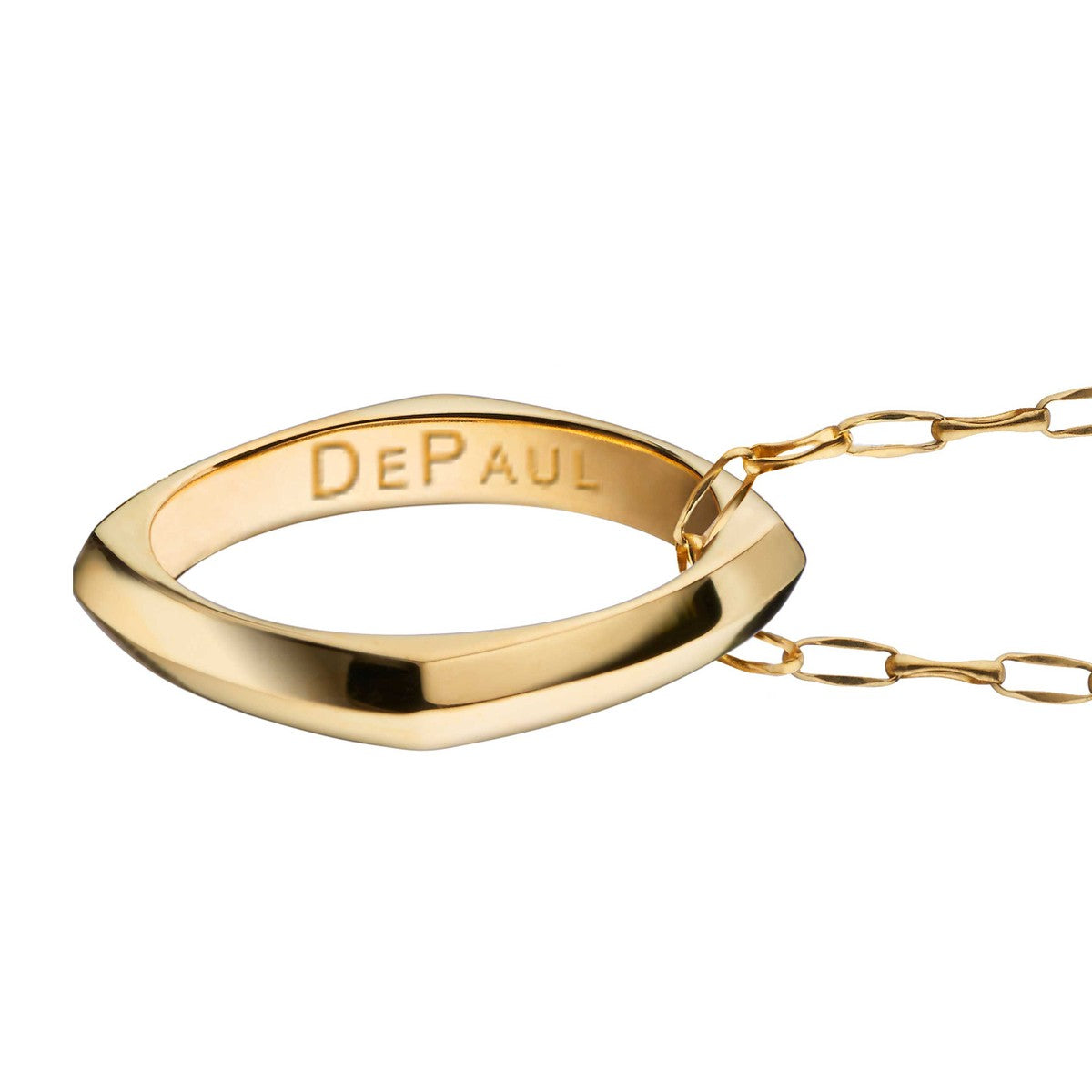 For centuries, poesy rings have carried special messages, delicately engraved. Now available in 18K gold with "DEPAUL" inside the ring and with a modern, distinctive shape for today's woman.