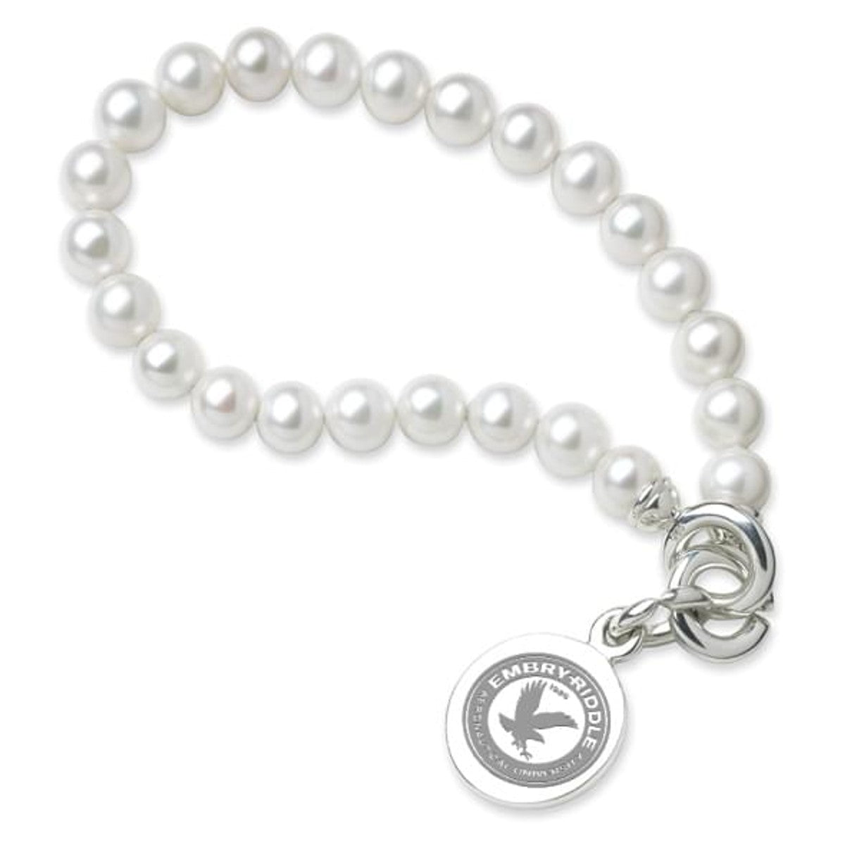 Embry-Riddle pearl bracelet and sterling silver Embry-Riddle charm features the Embry-Riddle seal delicately engraved on front and interlocking "C" clasp.