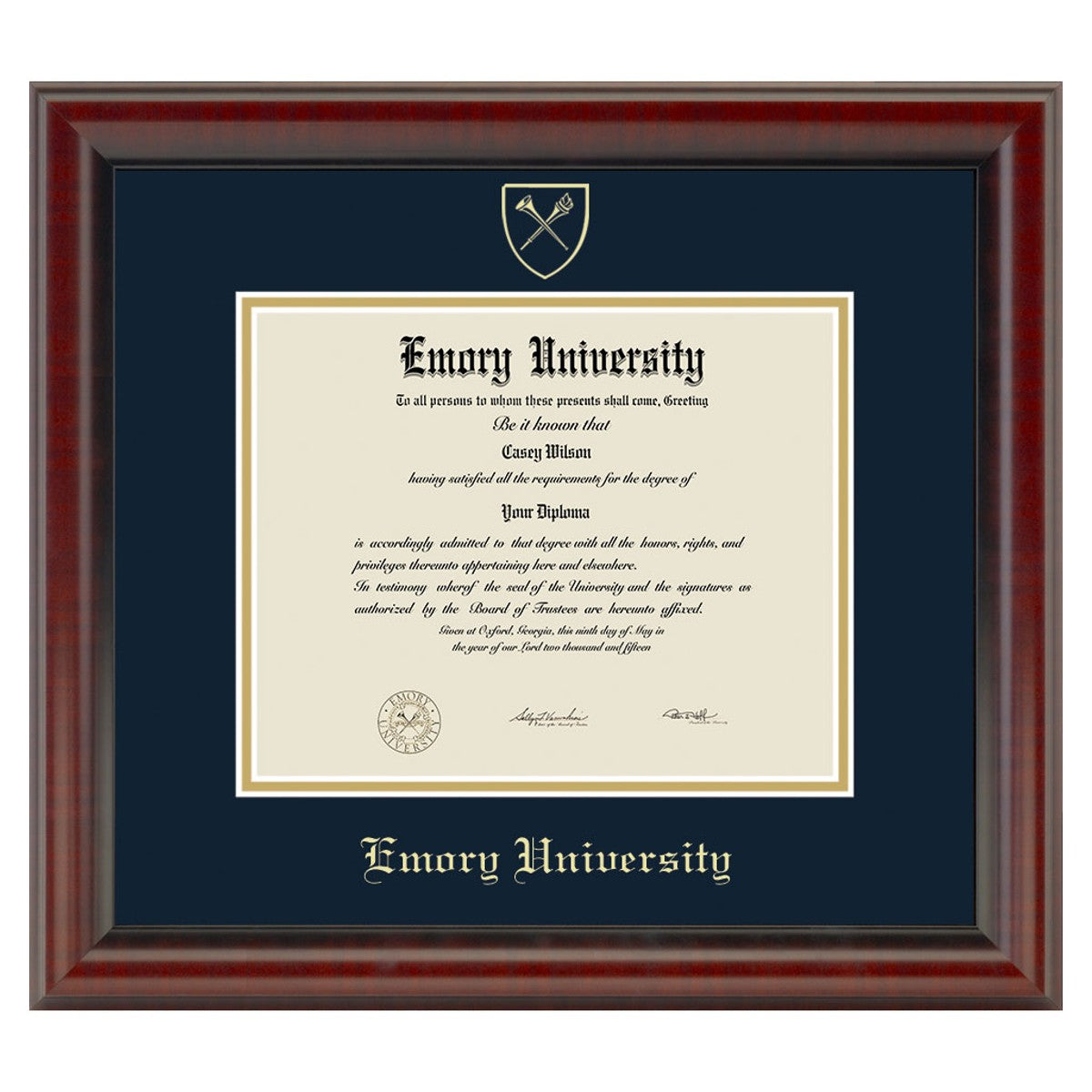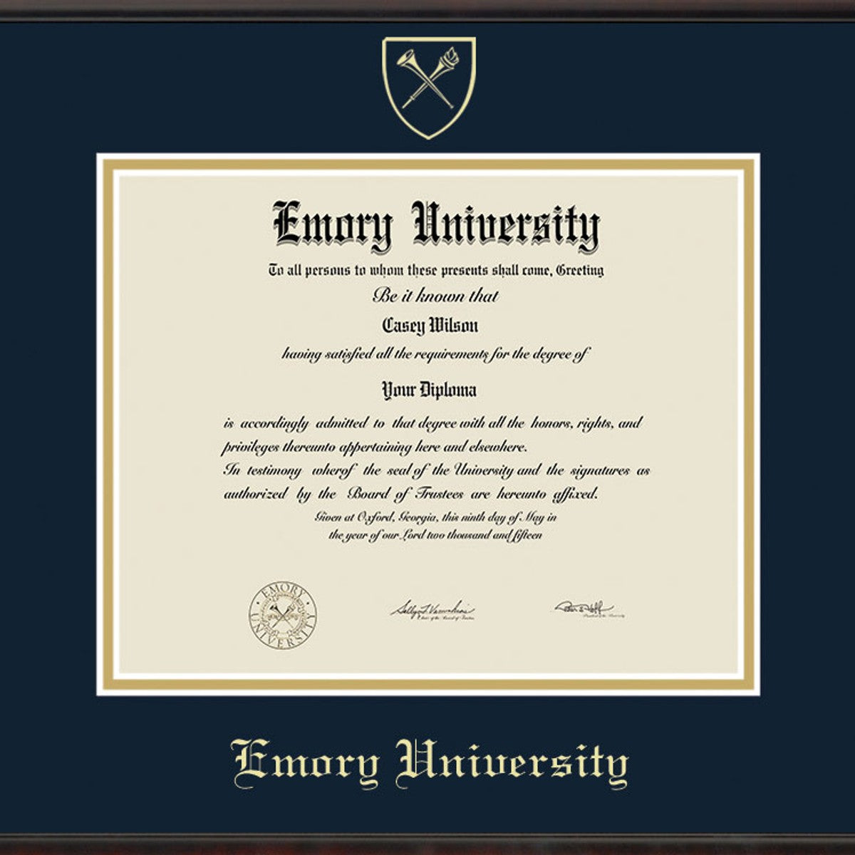 - Gold embossed Emory diploma seal