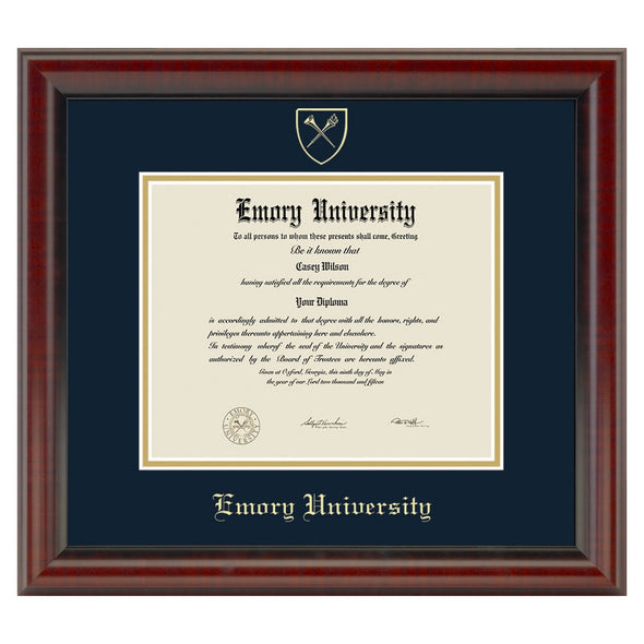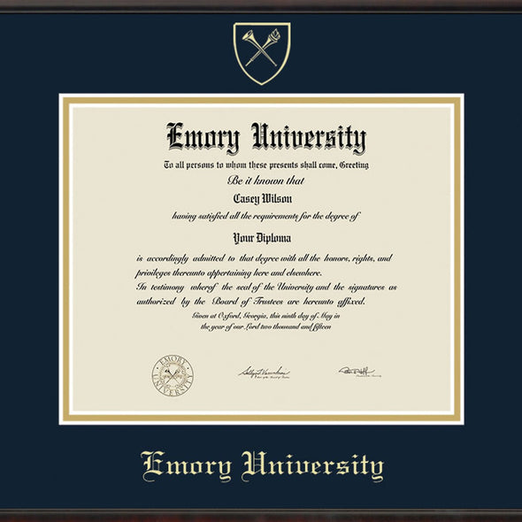 This Emory University diploma frame is crafted from solid wood in the USA. Proudly display your Emory diploma with museum quality conservation mounting materials to showcase and protect your Emory University diploma.