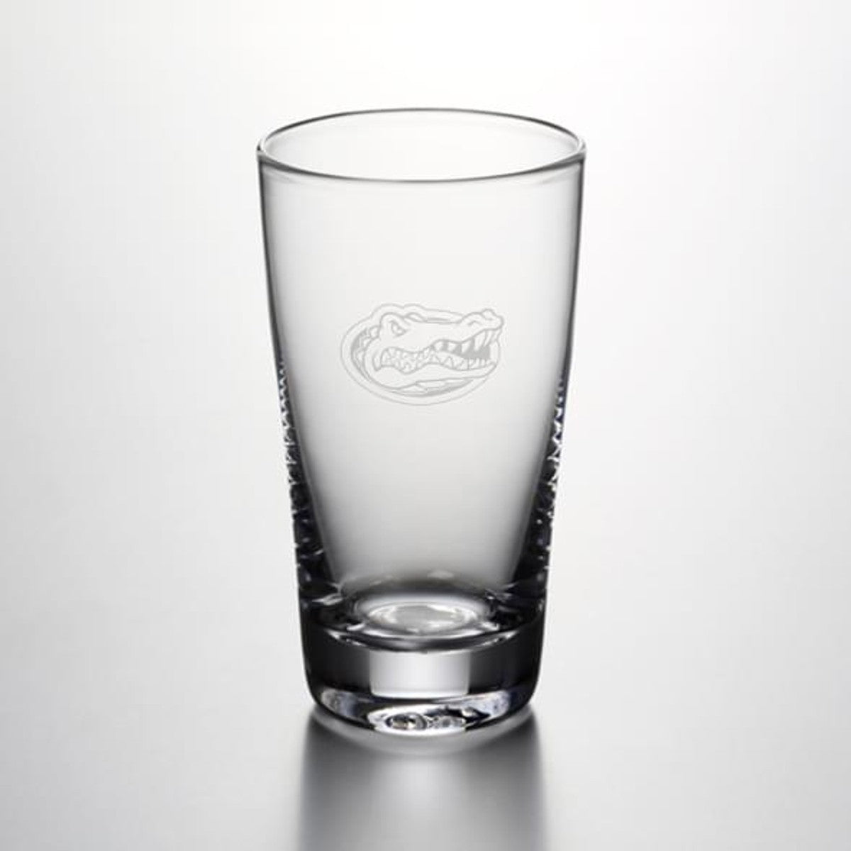 Florida Pint Glass features the Florida Logo handsomely engraved on the hand-blown glass. From its narrowly flared lip to its sleek, cylindrical body and sturdy, solid base, this pint glass is a classic.