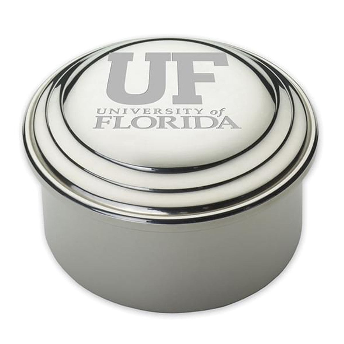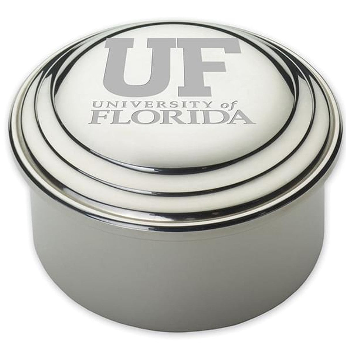 University of Florida pewter keepsake box is a beautiful space to store your treasures and features the Florida Logo on its lid.