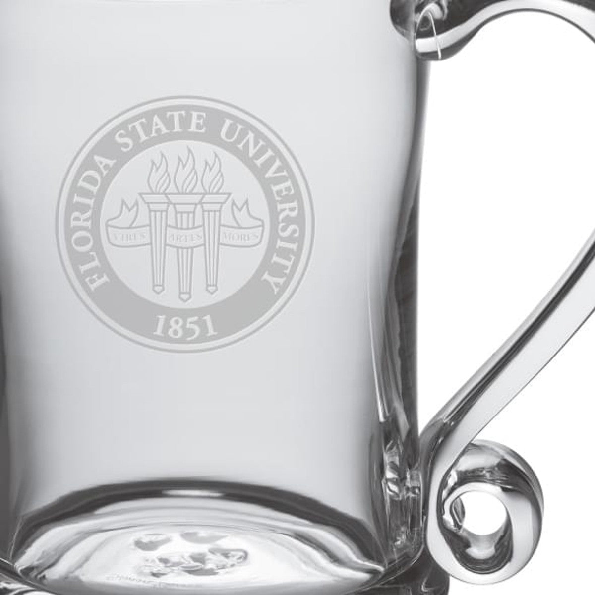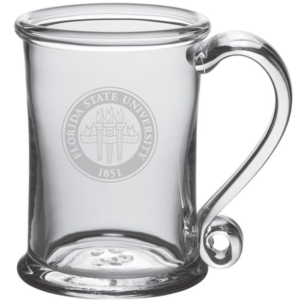 The FSU Glass Tankard is an ideal choice if you're looking for a versatile glass. The enchantingly curved glass handle will help ensure that you don't spill a drop. The Glass Tankard has the FSU Logo handsomely etched on the hand-blown glass.