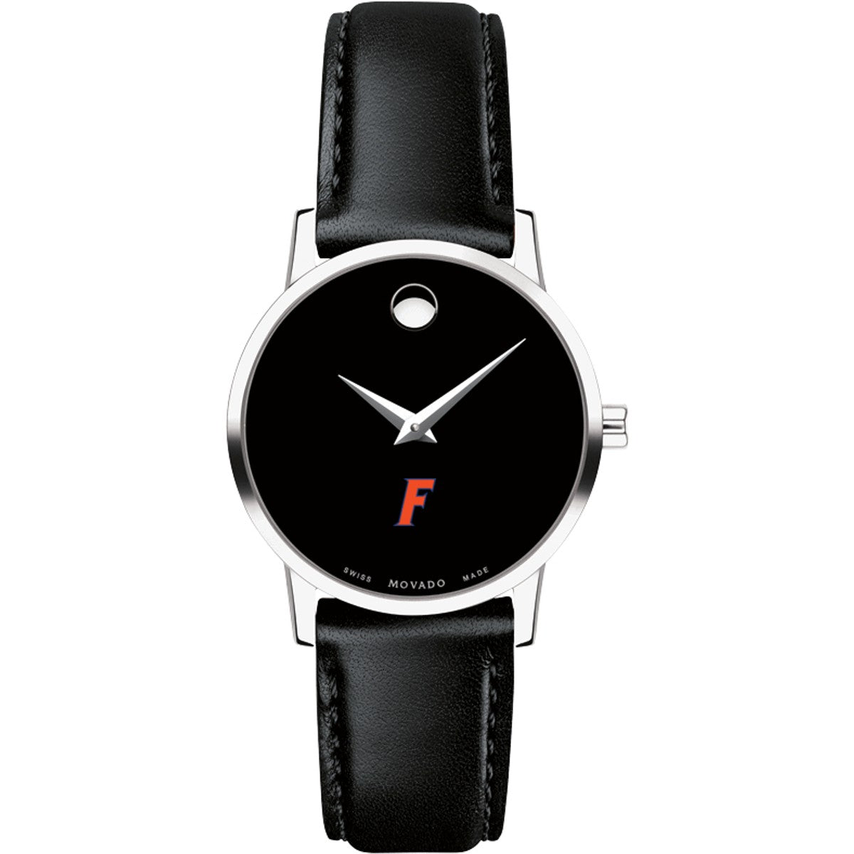 University of Florida Women's Movado Museum watch features the Florida Logo in full color at 6 o'clock on black dial. Created in 1947, the iconic concave dot symbolizes the sun at high-noon. Complimentary personal engraving.