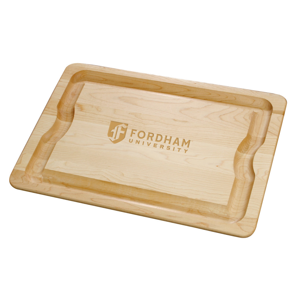 The Fordham University Maple Cutting Board is crafted from sturdy Maple with undercut handles and a wide groove to collect juices while you carve. Ample surface featuring the Fordham Logo is suitable for both cutting and serving.