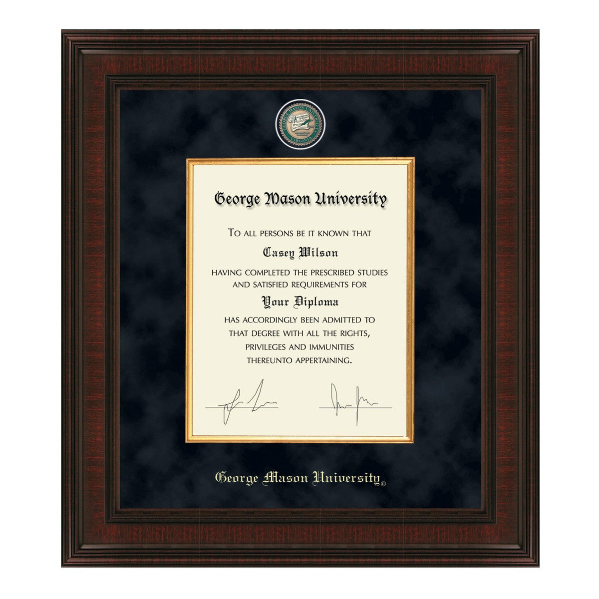 - Frame fits George Mason diploma measuring 10x14 V. Overall frame dimensions are 19.25x23.25