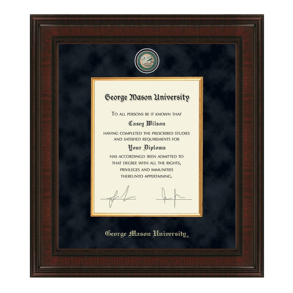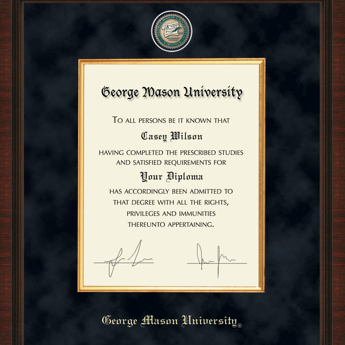 This George Mason University diploma frame is specifically made to showcase and preserve your George Mason University Diploma. Made from solid wood in the USA to meet stringent Library of Congress standards for archival document preservation.