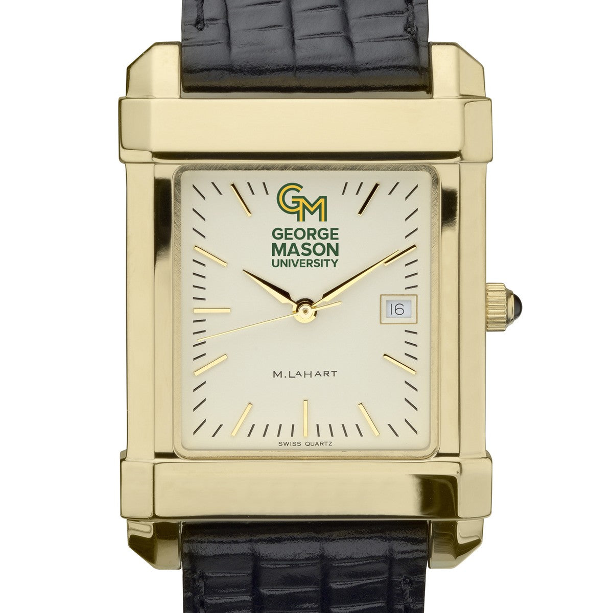 George Mason University men's gold watch featuring the George Mason logo on cream dial. Free Engraving on all watches.
