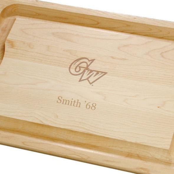 The George Washington University Maple Cutting Board is crafted from sturdy Maple with undercut handles and a wide groove to collect juices while you carve. Ample surface featuring the George Washington Logo is suitable for both cutting and serving.