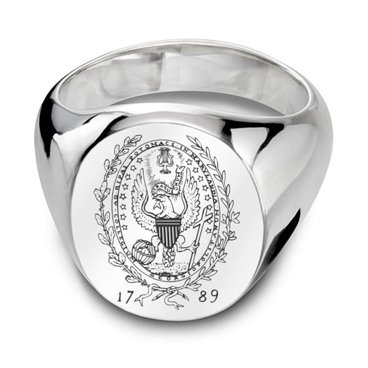 The Georgetown University Signet Ring features a classic oval shape; a fine piece of sterling silver jewelry to be treasured for generations.