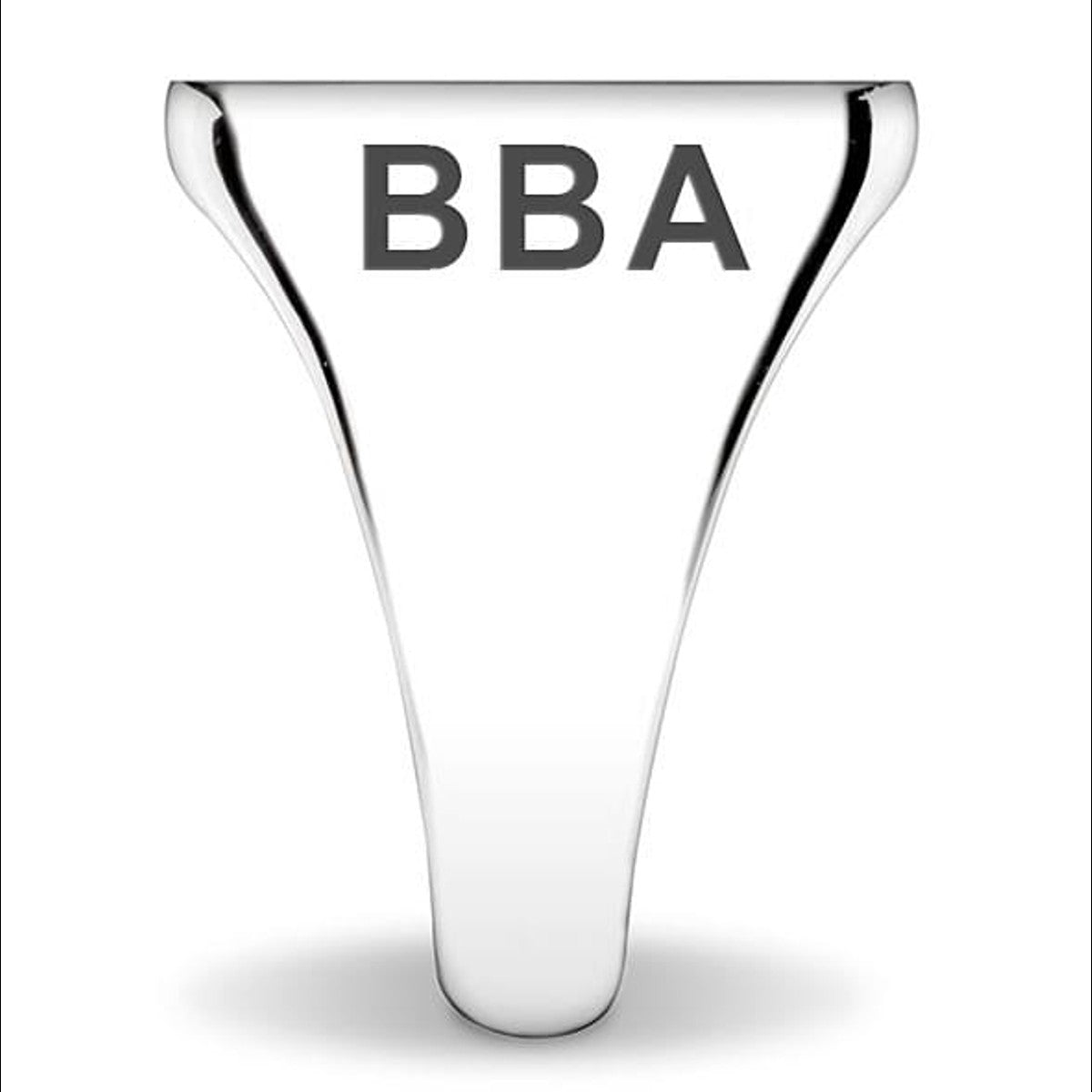 Side Engraving - The shoulder of each side of the ring can be customized free of charge with up to 4 characters on each side. Traditionally, the degree is on the left side and the graduation year on the right side. Many customers choose initials on one of the sides in lieu of the degree or the year.