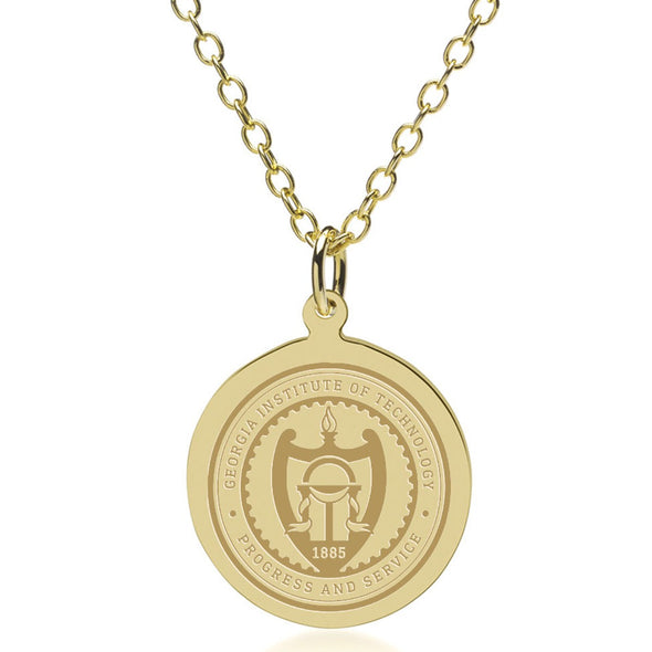 This solid 18-karat gold pendant and chain is an instant heirloom, featuring the Georgia Tech Logo beautifully engraved on the front with room for personalization on the back.