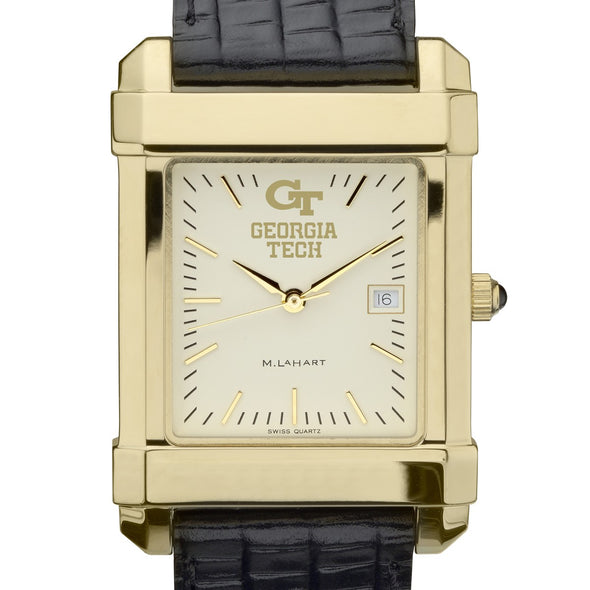 Georgia Tech men's gold watch featuring the Georgia Tech Logo on cream dial. Free Engraving on all watches.
