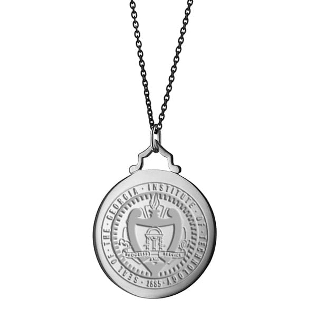 Celebrate her spirit with this sterling silver pendant set with a brilliant white sapphire. Black steel necklace adds a modern touch. Georgia Tech seal engraved on back.