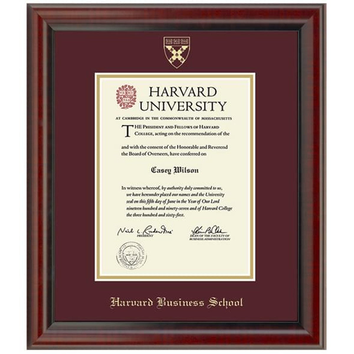 - Gold embossed Harvard Business School diploma seal