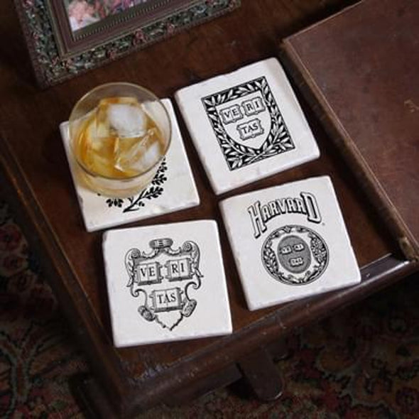 Handcrafted of Italian marble, our Harvard Vintage Logos coasters feature cork backing to protect your tabletop and prevent slipping.