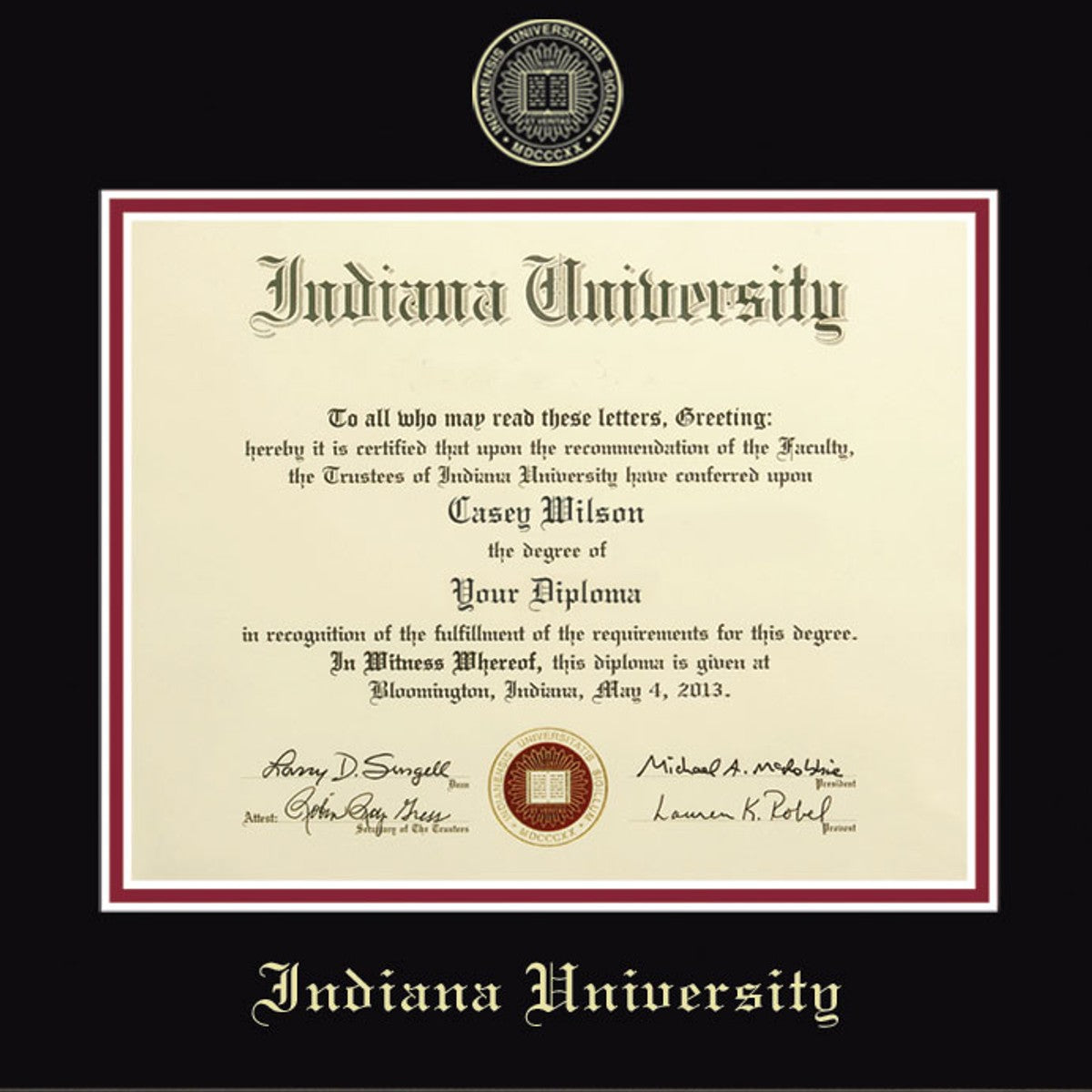 • Gold embossed Indiana University diploma seal