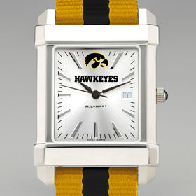 University of Iowa men's gold watch featuring the University of Iowa logo on cream dial. Free Engraving on all watches.