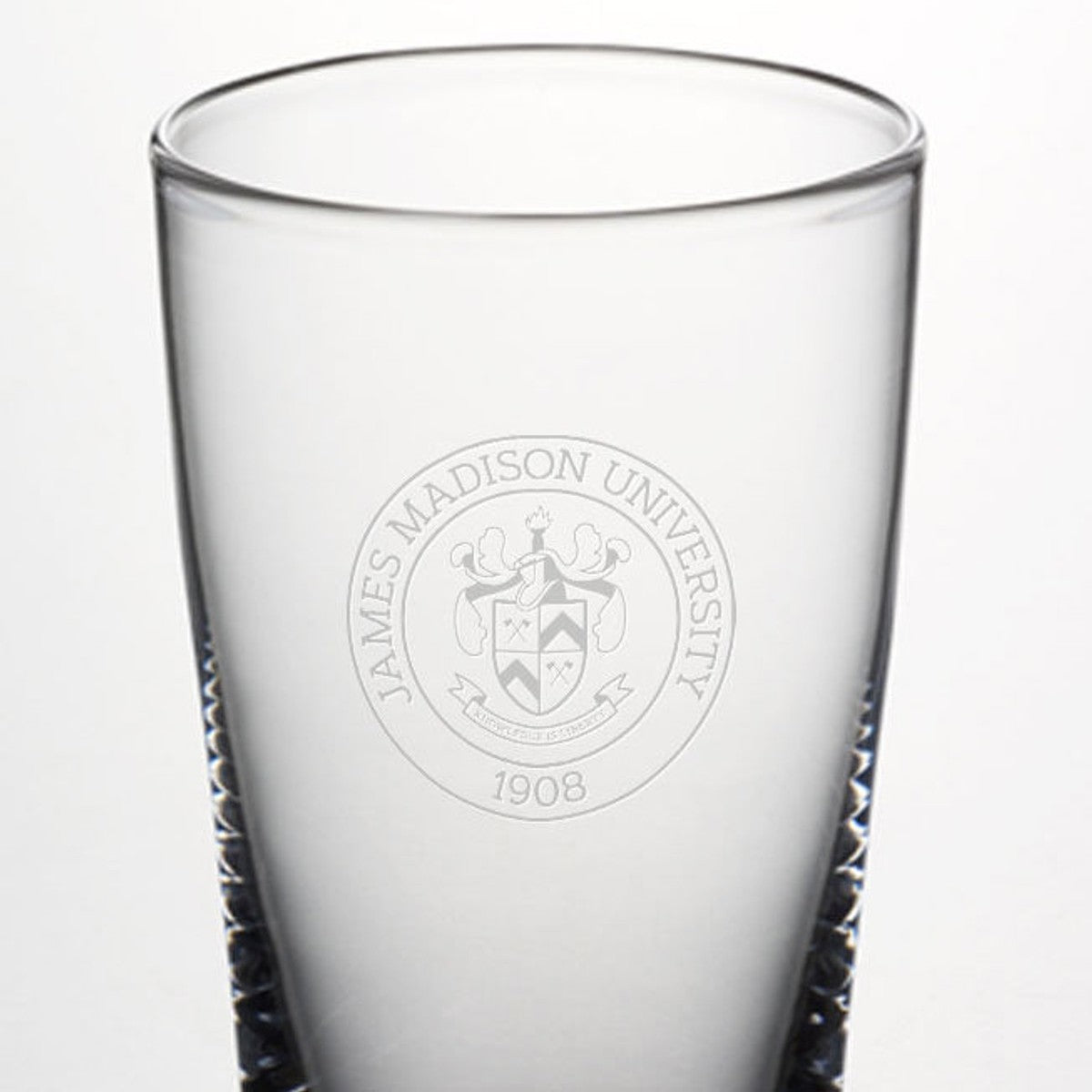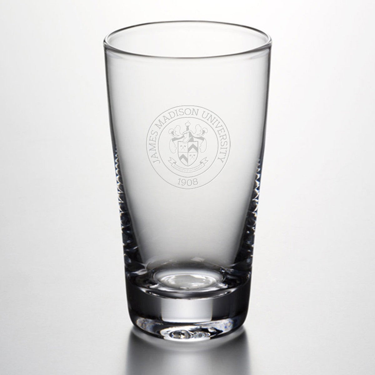 James Madison Pint Glass features the James Madison Logo handsomely engraved on the hand-blown glass. From its narrowly flared lip to its sleek, cylindrical body and sturdy, solid base, this pint glass is a classic.