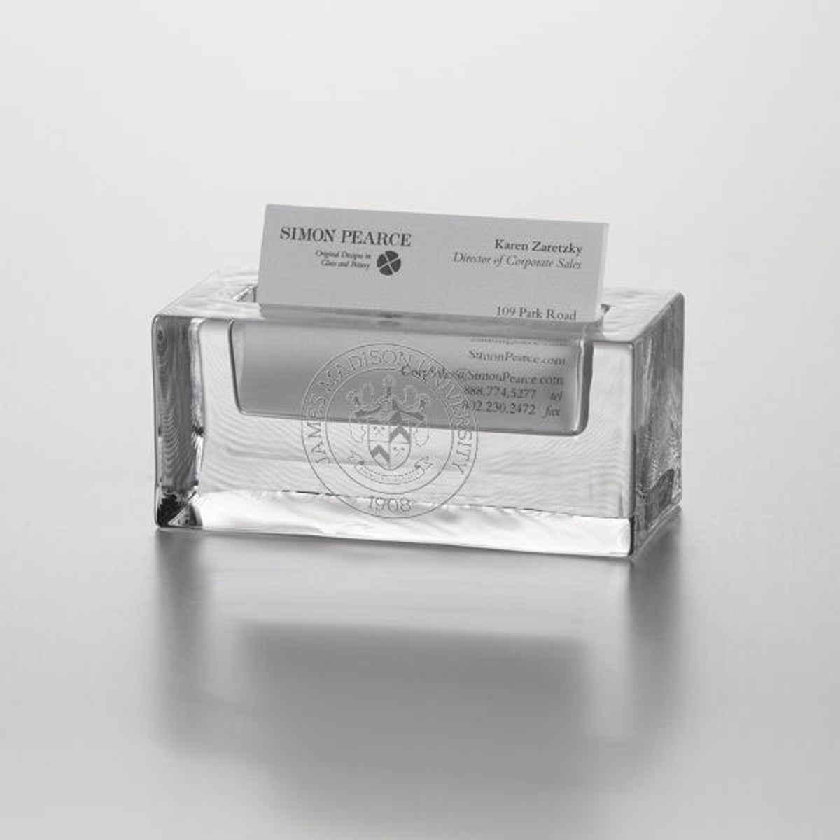 The James Madison University Glass Business Cardholder is a functional adornment to any working environment. Formed from only the finest clear glass, the James Madison Logo is distinctly etched on the front.