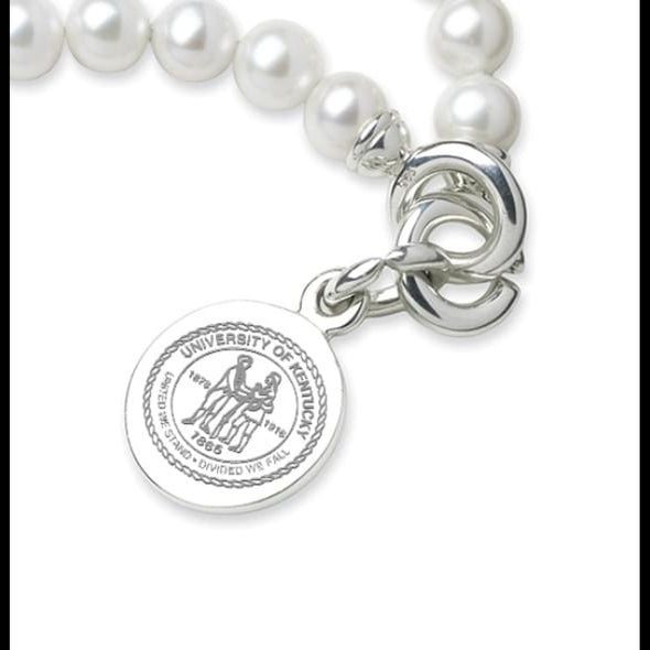 University of Kentucky pearl bracelet and sterling silver Kentucky charm features the Kentucky seal delicately engraved on front and interlocking "C" clasp.