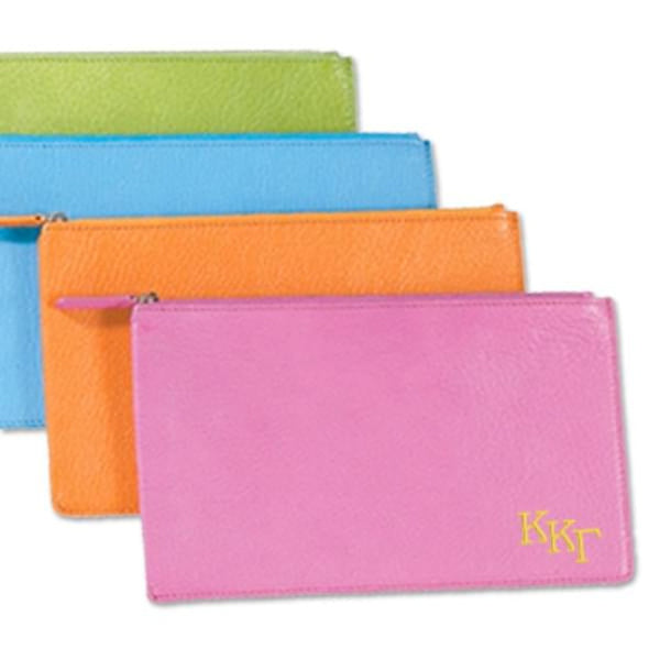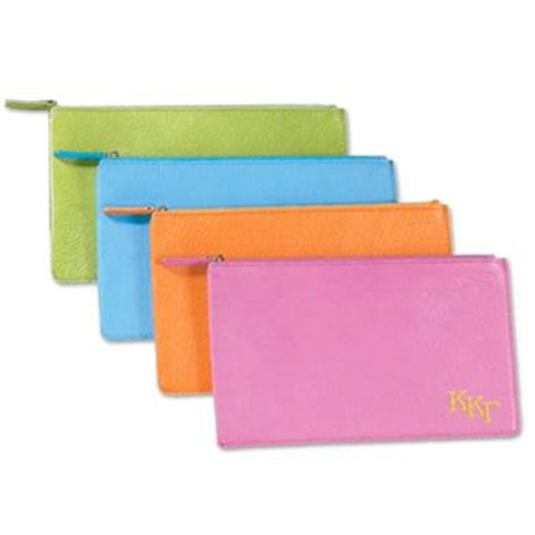 This conveniently sized large flat zipper case is perfect for pencils, pens, makeup, notes and receipts. Genuine goatskin offers a supple hand and beautiful appearance.