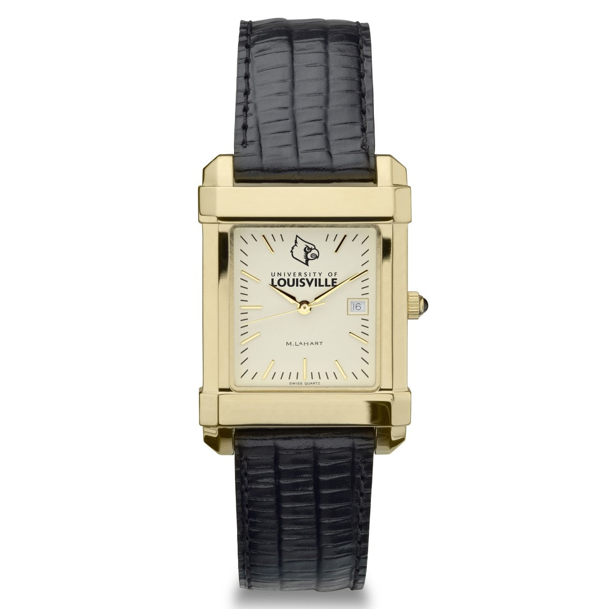 University of Louisville men's gold watch featuring the Louisville logo on cream dial. Free Engraving on all watches.