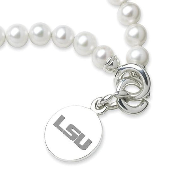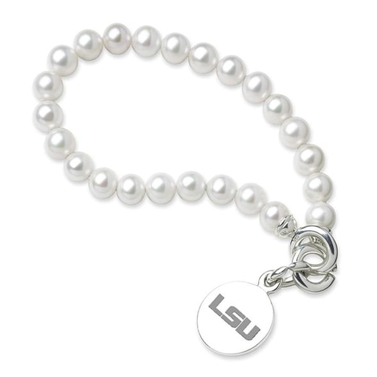 LSU pearl bracelet and sterling silver LSU charm features the LSU logo delicately engraved on front and interlocking "C" clasp.