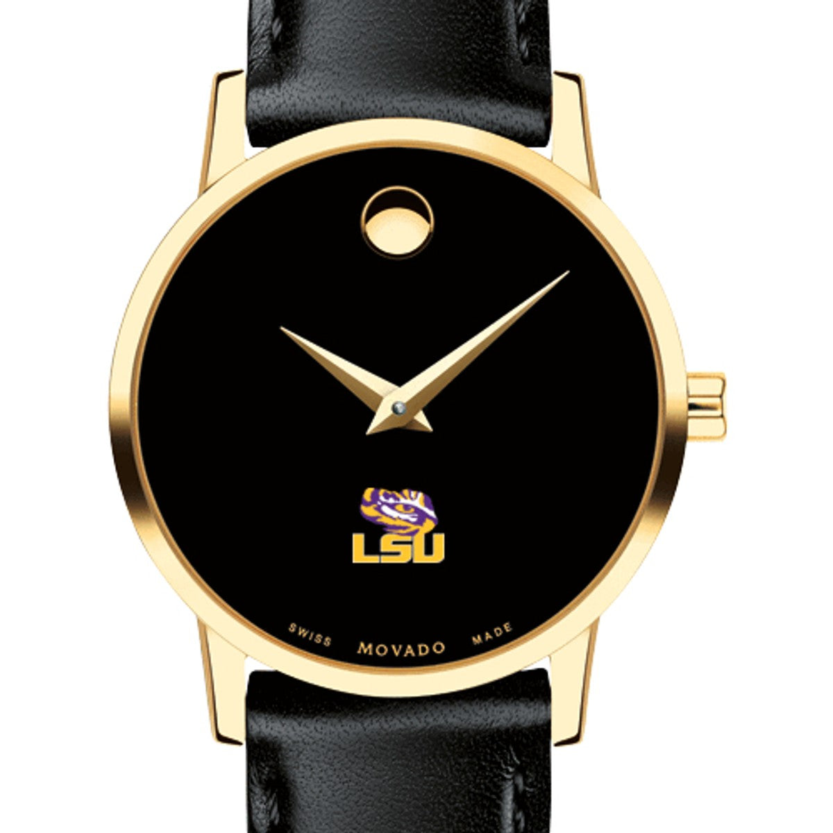 Louisiana State University Women's Movado Museum watch features the LSU Logo in full color at 6 o'clock on black dial. Created in 1947, the iconic concave dot symbolizes the sun at high-noon. Complimentary personal engraving.