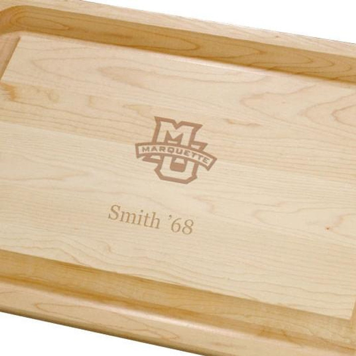 The Marquette Maple Cutting Board is crafted from sturdy Maple with undercut handles and a wide groove to collect juices while you carve. Ample surface featuring the Marquette Logo is suitable for both cutting and serving.